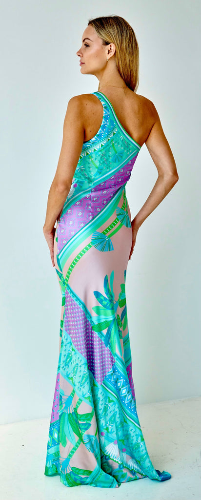 Step into the season’s most glamorous moment with the Poolside Glamour Dress — a striking one-shoulder gown that radiates confidence, color, and effortless sophistication. Crafted in pure Italian silk, this design features a fluid silhouette that skims the body beautifully and moves with the grace of warm sunlight on water.
